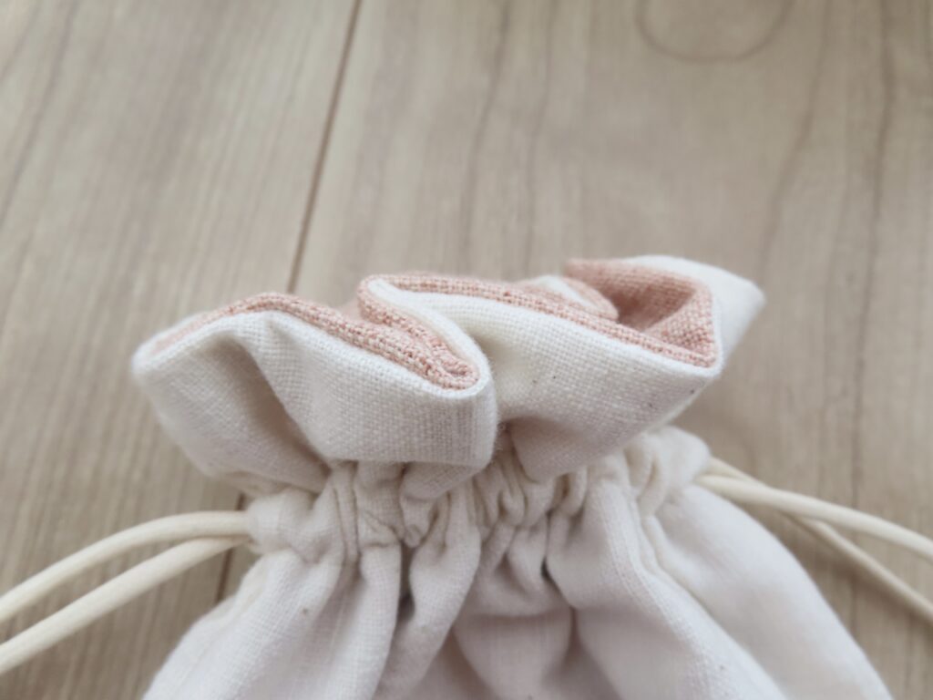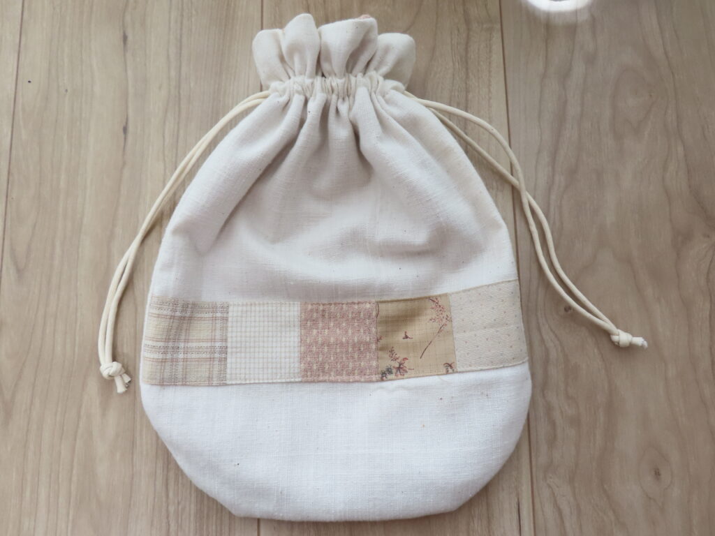 これまで10年以上使っていた自作の巾着型ポーチ。