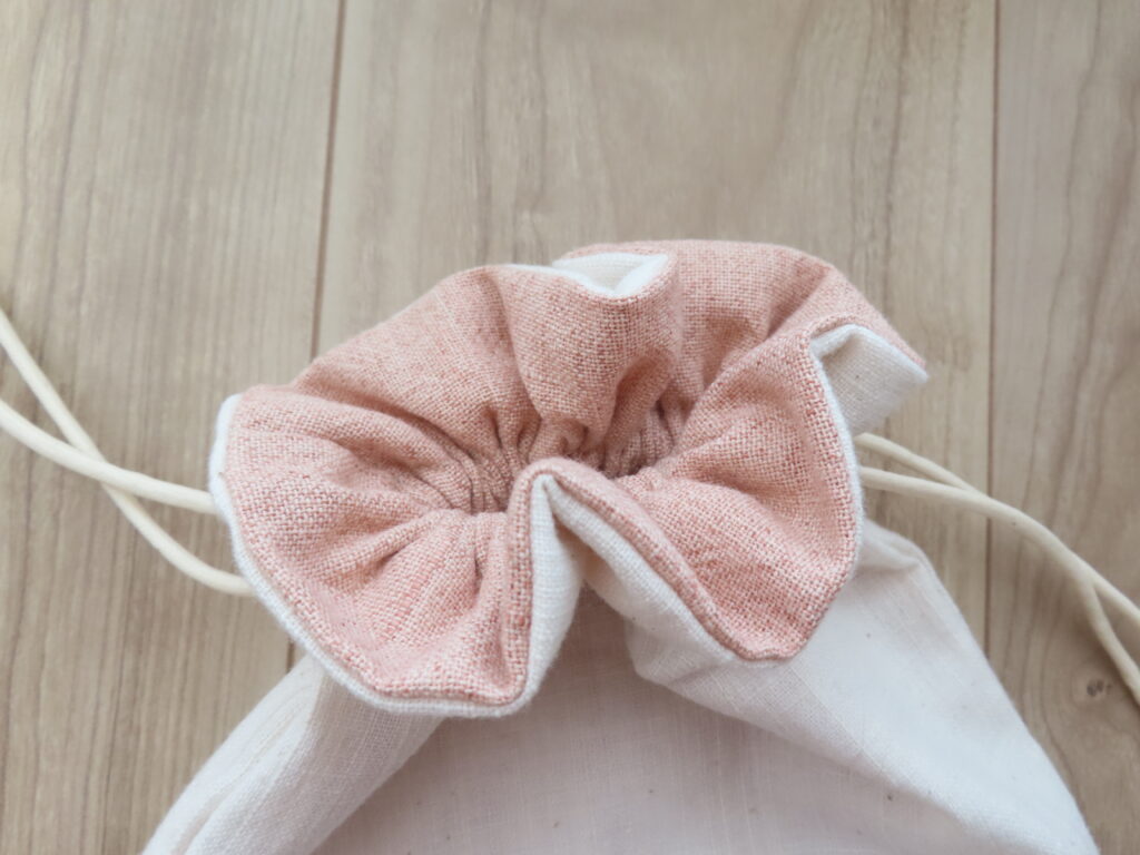 裏地は、茜で染めたような淡い桃色の先染め布。