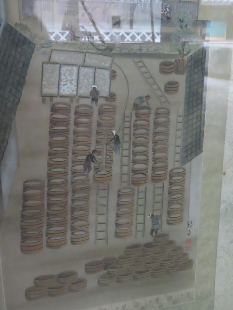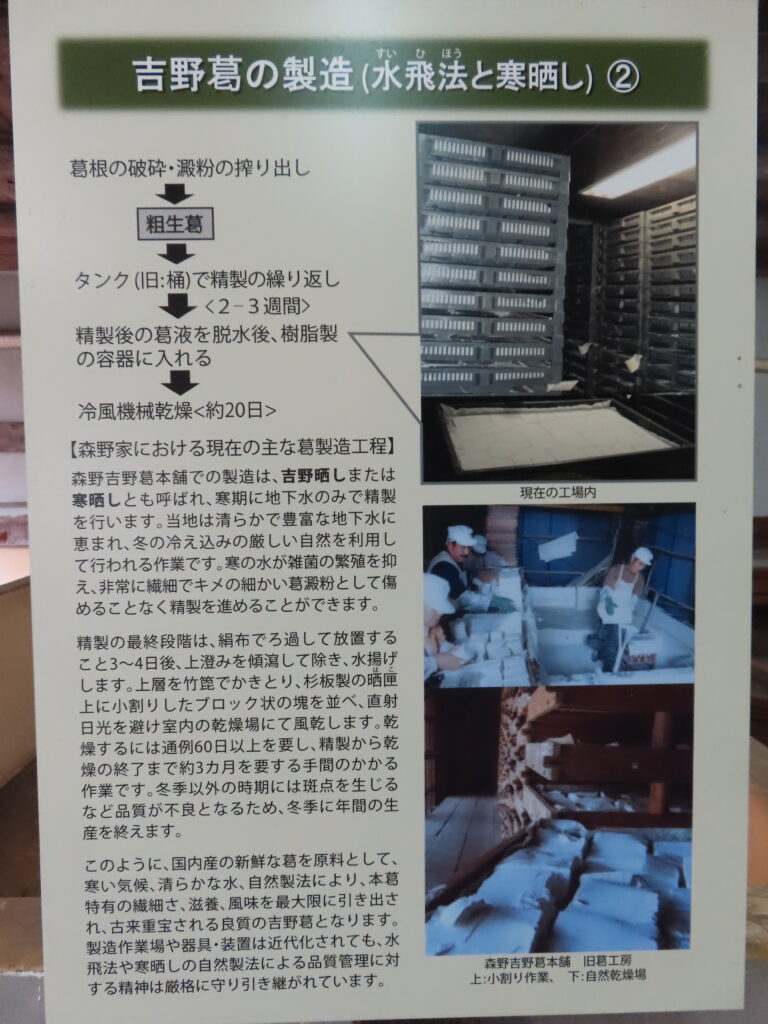 中に入ると、吉野葛製造の際に使われる旧桶がありました。(現在は別のタンクで製造されているそうです。)