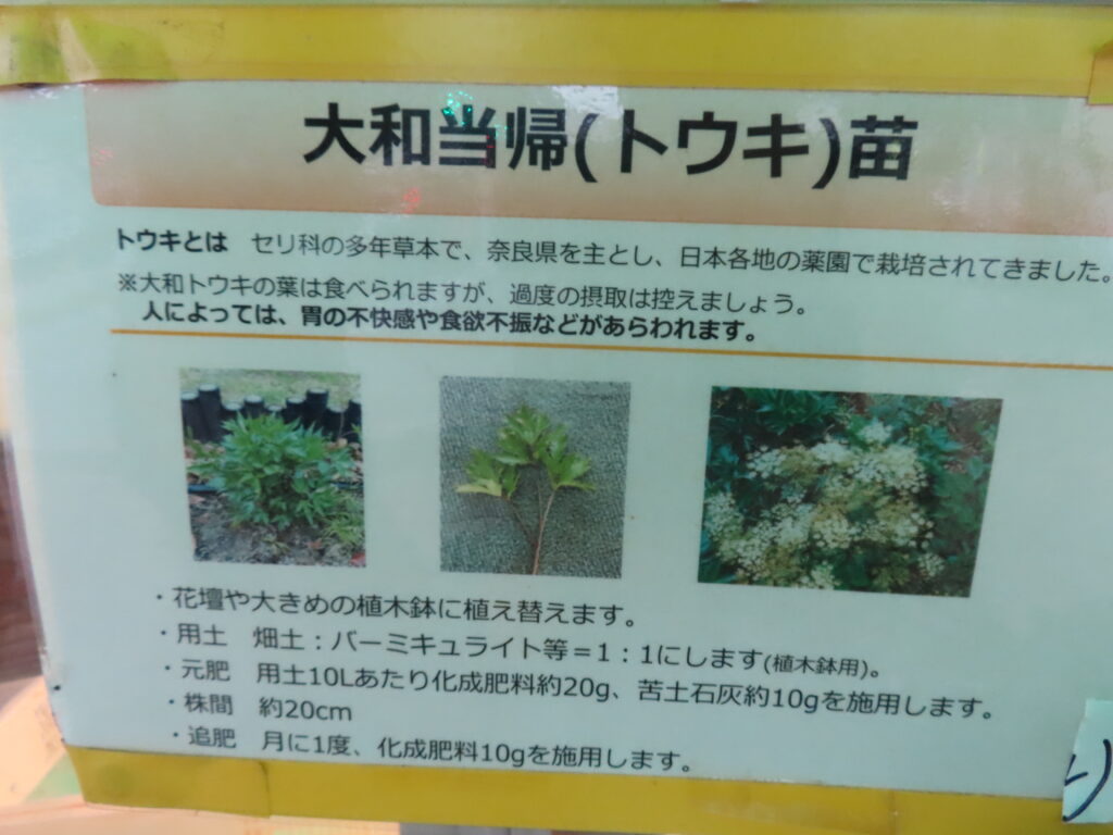 帰りに寄った道の駅では、なんと大和当帰の苗が。