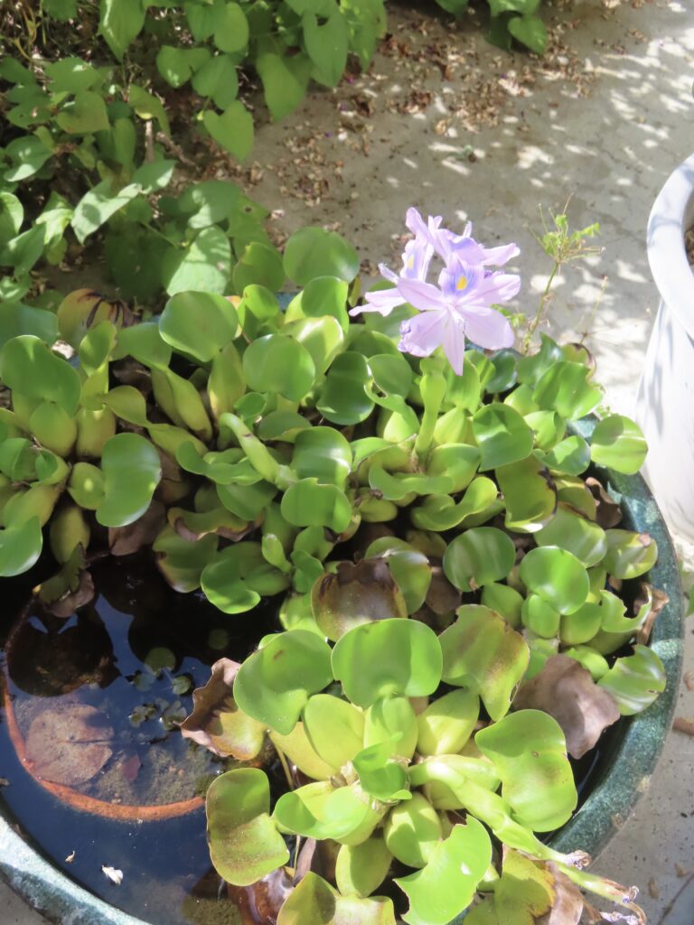 秋の花に混じって、本来は夏に咲くはずのホテイアオイも10月になって初めて咲きました。