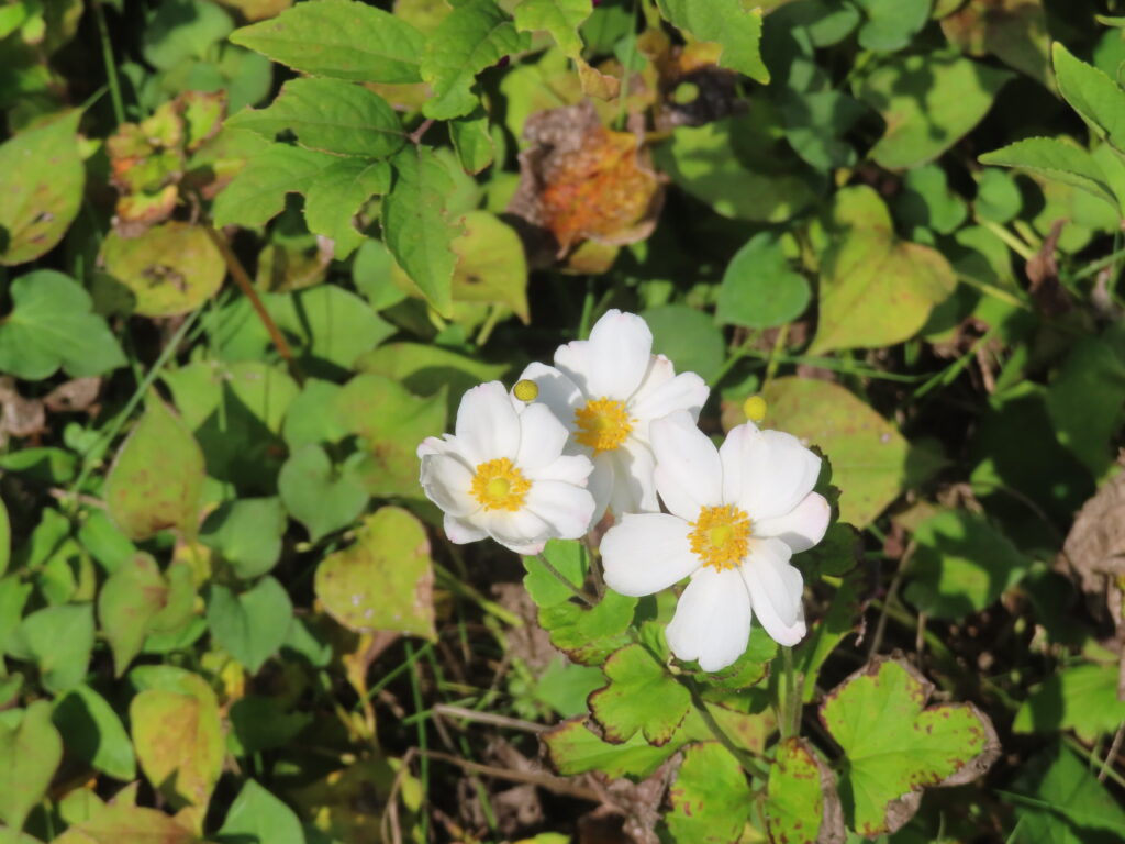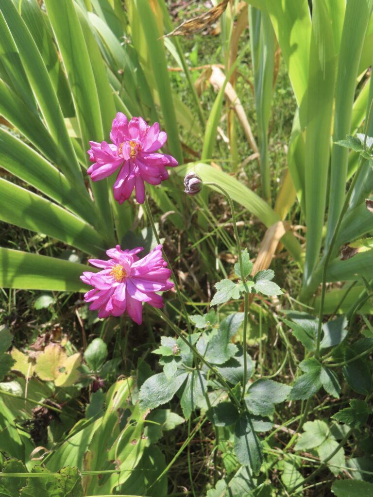 秋明菊も、白の一重と、ピンクの八重が咲きました。