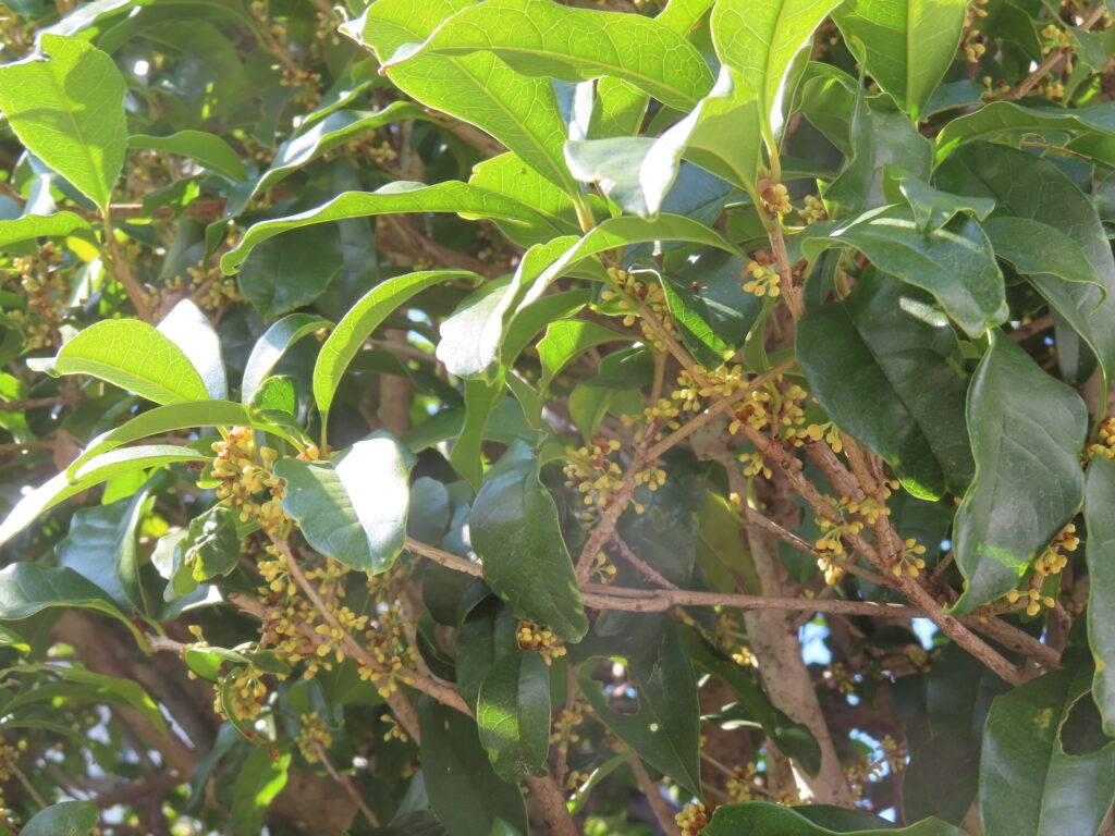 庭の金木犀のつぼみが大きくなり、色づいてきました。