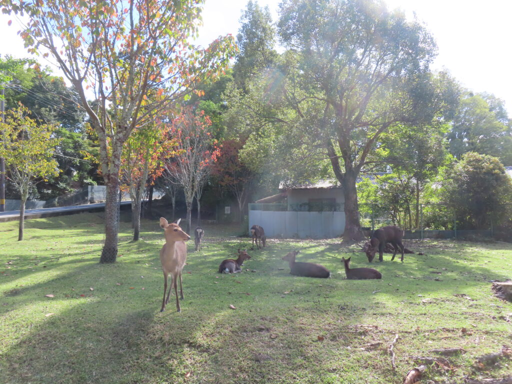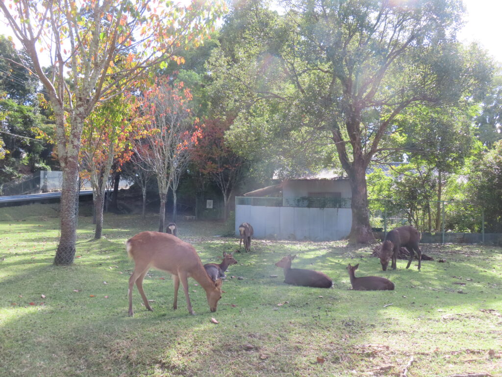 秋の日差しの中、気持ちよさそうな鹿たち。