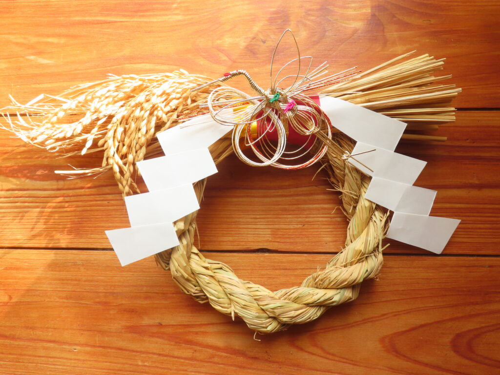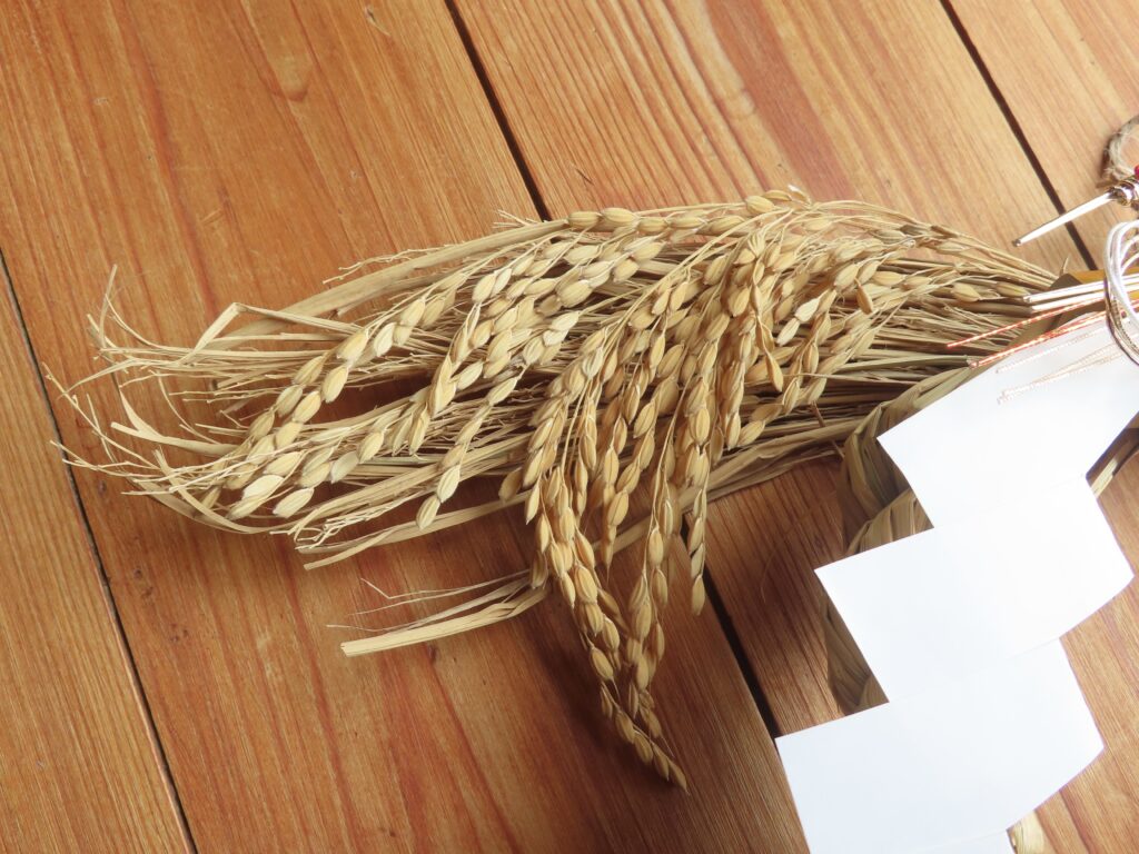 庭で少しだけ育て、収穫した稲穂を使っています。