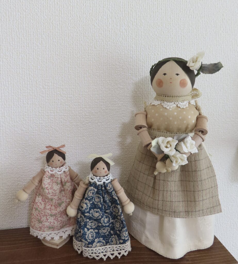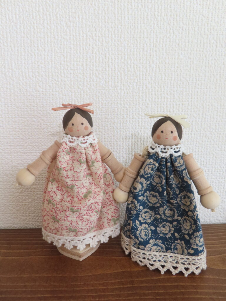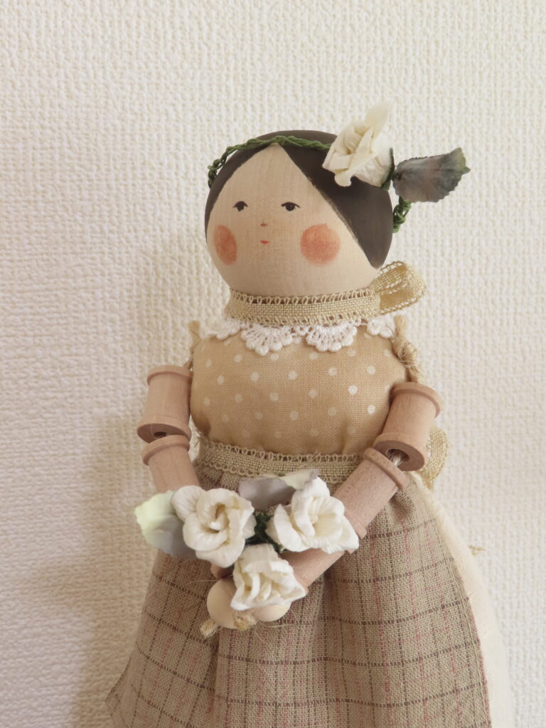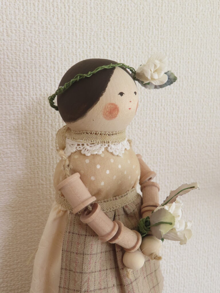 こちらは、先週作った木製のスプールドール(糸巻き人形)。
