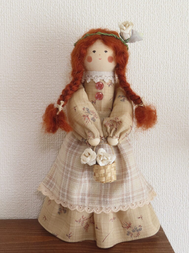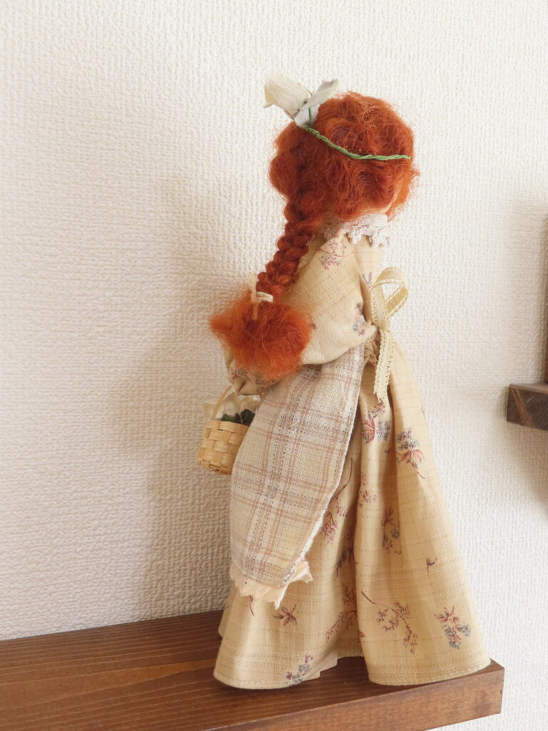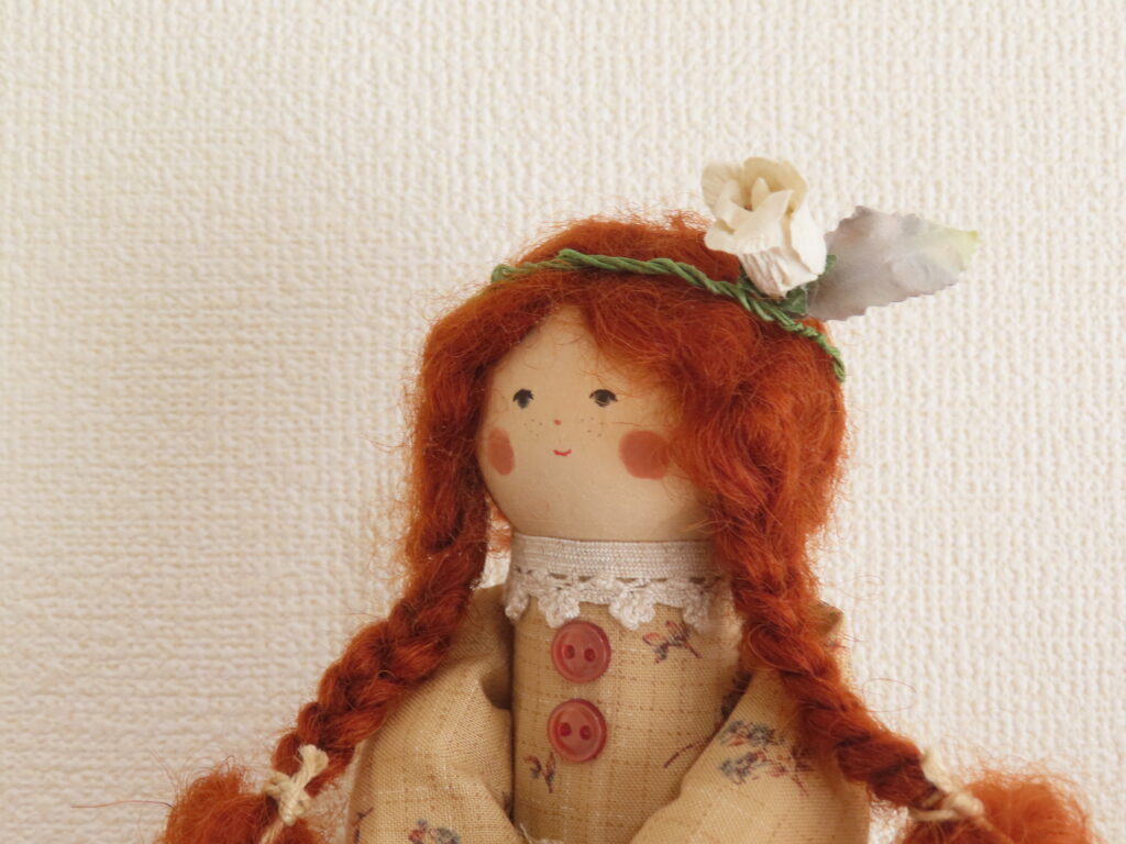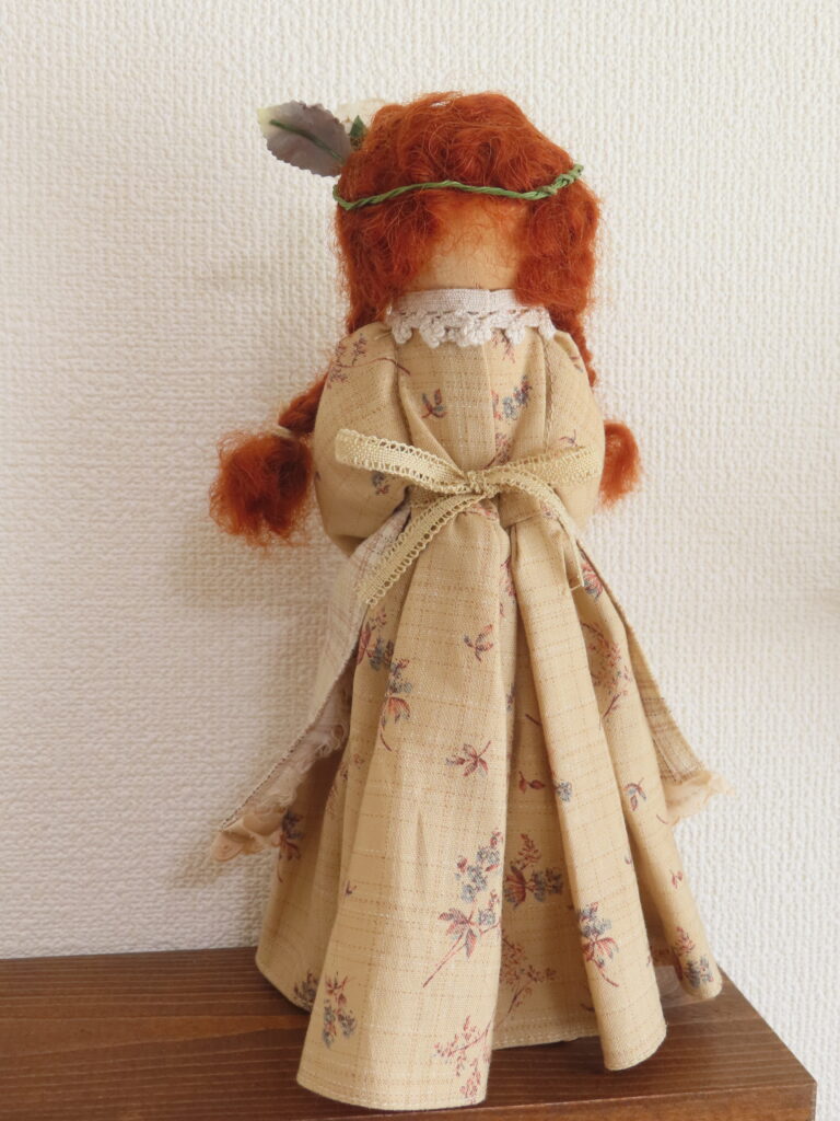 こちらは、少し前にご紹介したマリラのお人形と同じサイズで作った、アンのような赤毛の女の子。