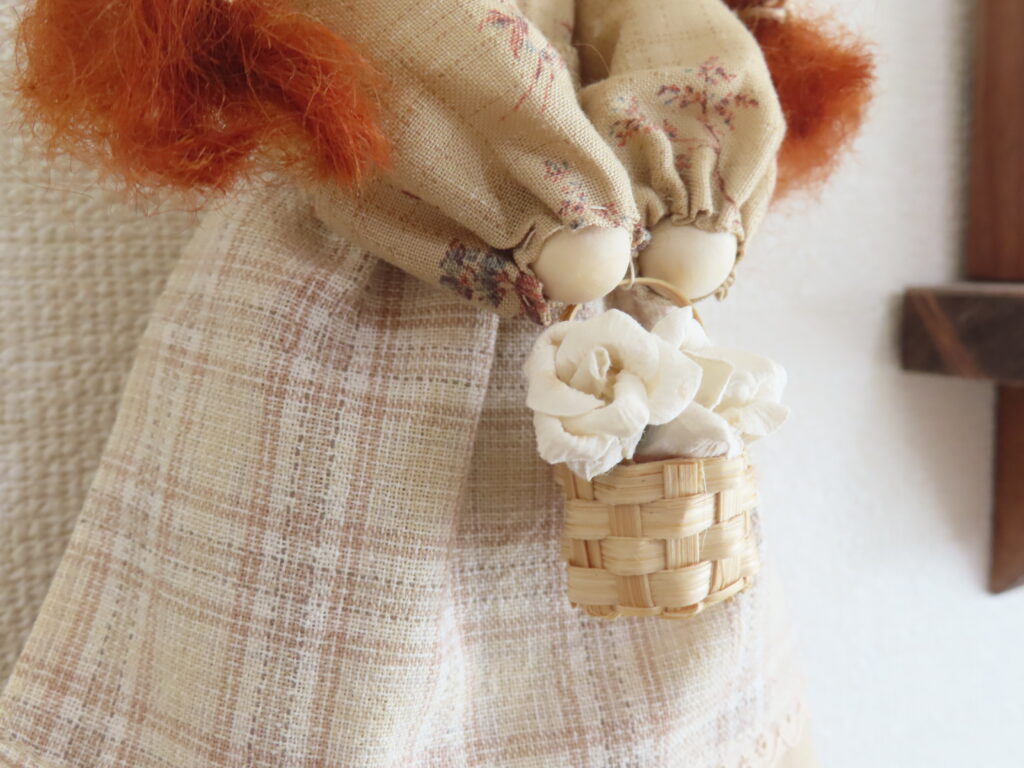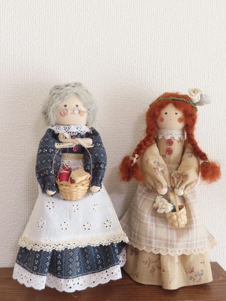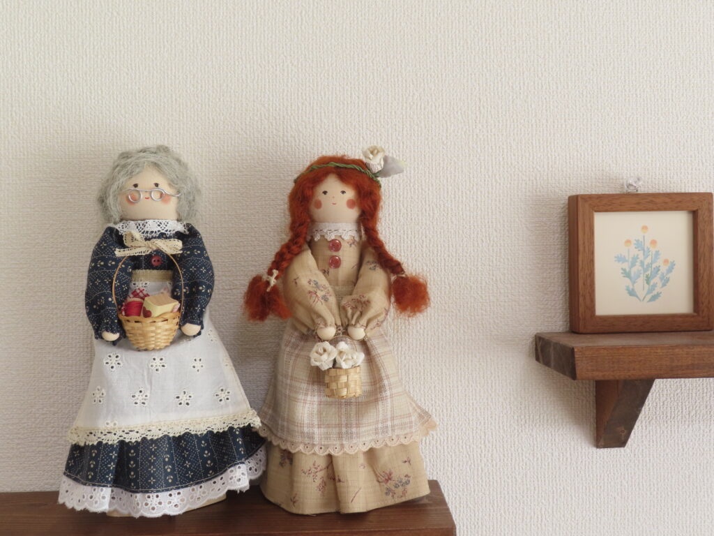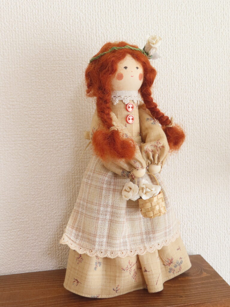 こちらは、少し前にご紹介したマリラのお人形と同じサイズで作った、アンのような赤毛の女の子。