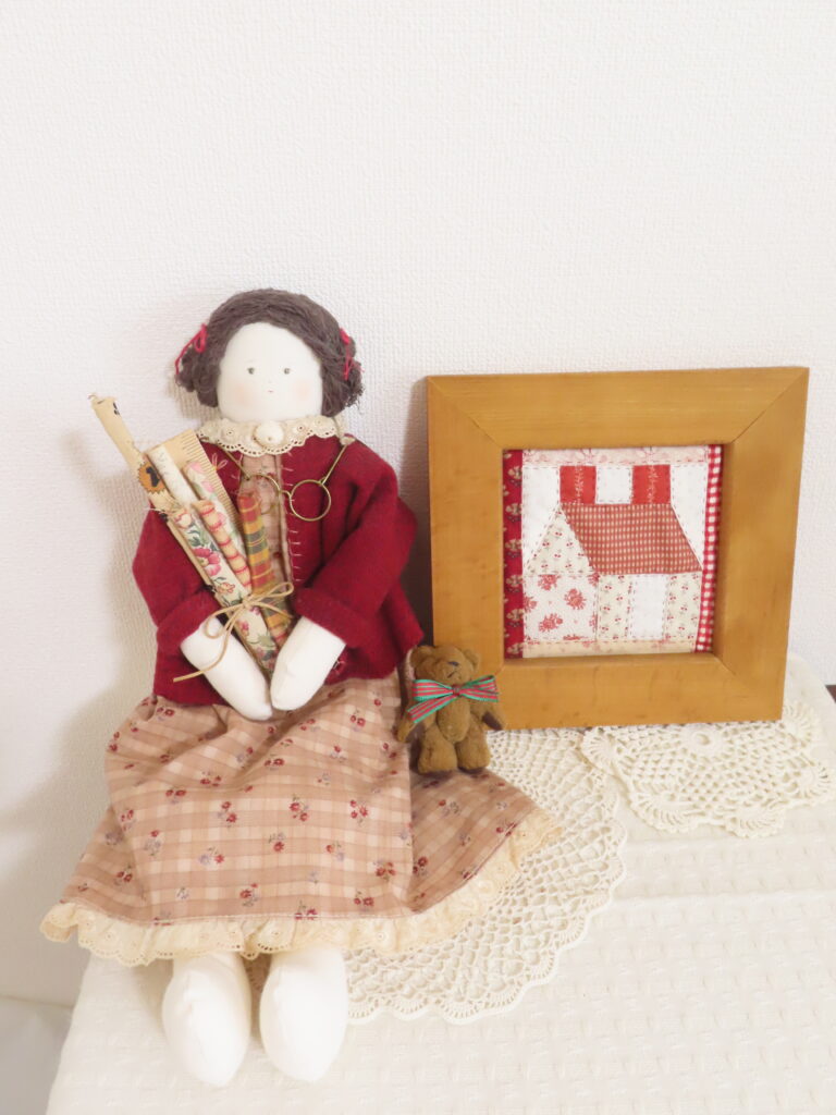 先週末はあまりに寒くってこたつから出られず…ふと思いついて、家にあった額に合わせて小さなハウスのキルトを作ってみました。