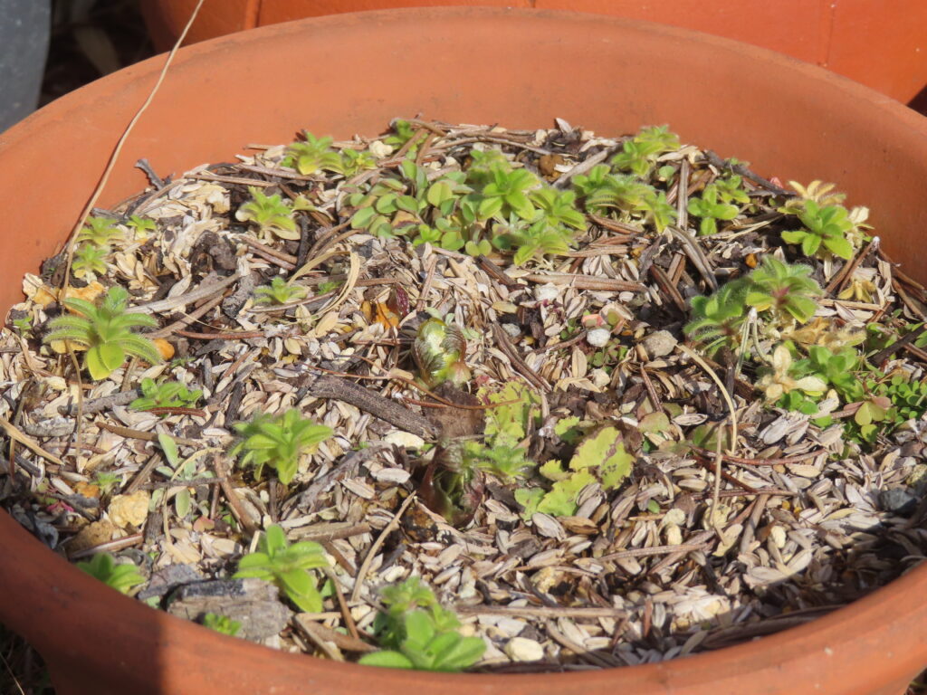 昨年うちにやってきた福寿草は、今年も芽を出してくれました。(写真の真ん中)